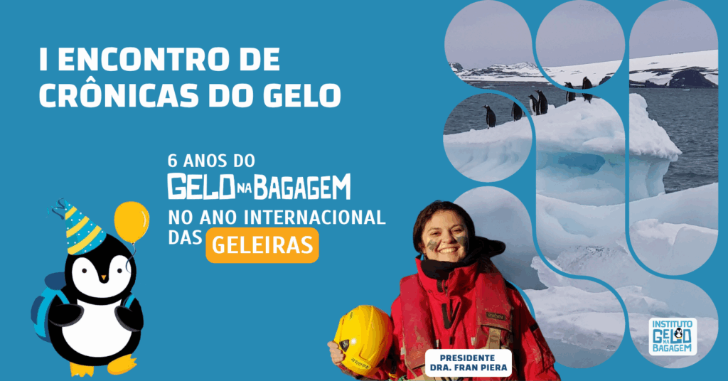 O frio da Antártica vai chegar a São Paulo no dia 24 de outubro de 2025. A data marca o Dia Internacional da Conscientização sobre as Mudanças Climáticas e também o aniversário de 6 anos do Instituto Gelo na Bagagem, realizador do evento I Encontro de Crônicas do Gelo – Ciência & Conexões pelo Clima, que acontecerá no Edifício que abriga a subsede da NTC&Logística, na Vila Maria.